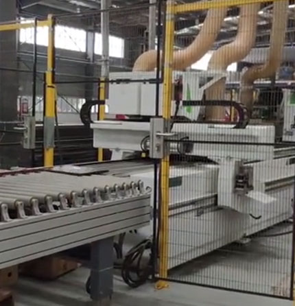 9臺(tái)豪邁開料機(jī)一字排開,不同規(guī)格尺寸同時(shí)裁切,并有效防止開料爆邊爆口,實(shí)現(xiàn)板材切割光滑、精準(zhǔn)。滿負(fù)荷狀態(tài)下,每天1600件板/臺(tái),隨后進(jìn)入周轉(zhuǎn)緩沖區(qū),每塊板材將擁有專屬二維碼身份標(biāo)識(shí)